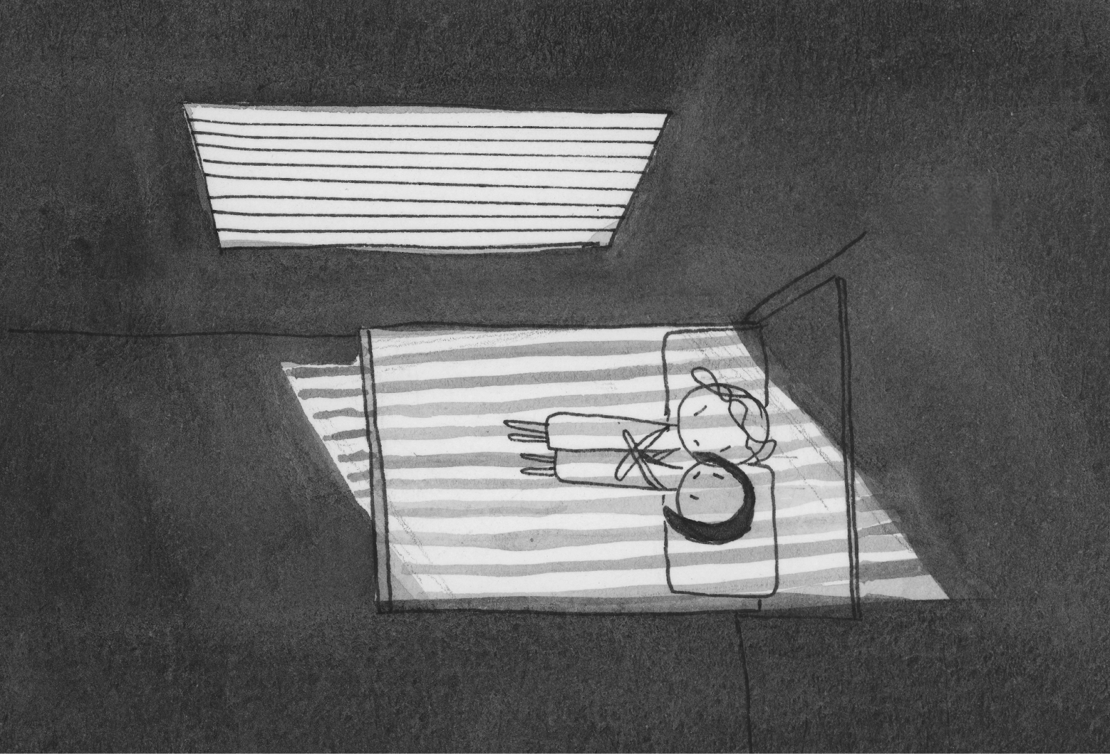 The last night of Jon being there with me, we tried avoiding the obvious horrifying sadness. In bed I was equipped with my usual sleep uniform, earplugs, mouth guard for my tmj, and wrist guard. Seductively I motioned, “Are you ready to miss all of this?” We laughed and then grasped each other tightly. The terror trapped in my throat where I kept it locked. We didn’t know when we’d see each other again. I didn’t know when I’d go home again. Jon and I weren’t married yet but we had been together for ten years. He was my home. Now we had to be apart, during the worst thing I’d ever endured.