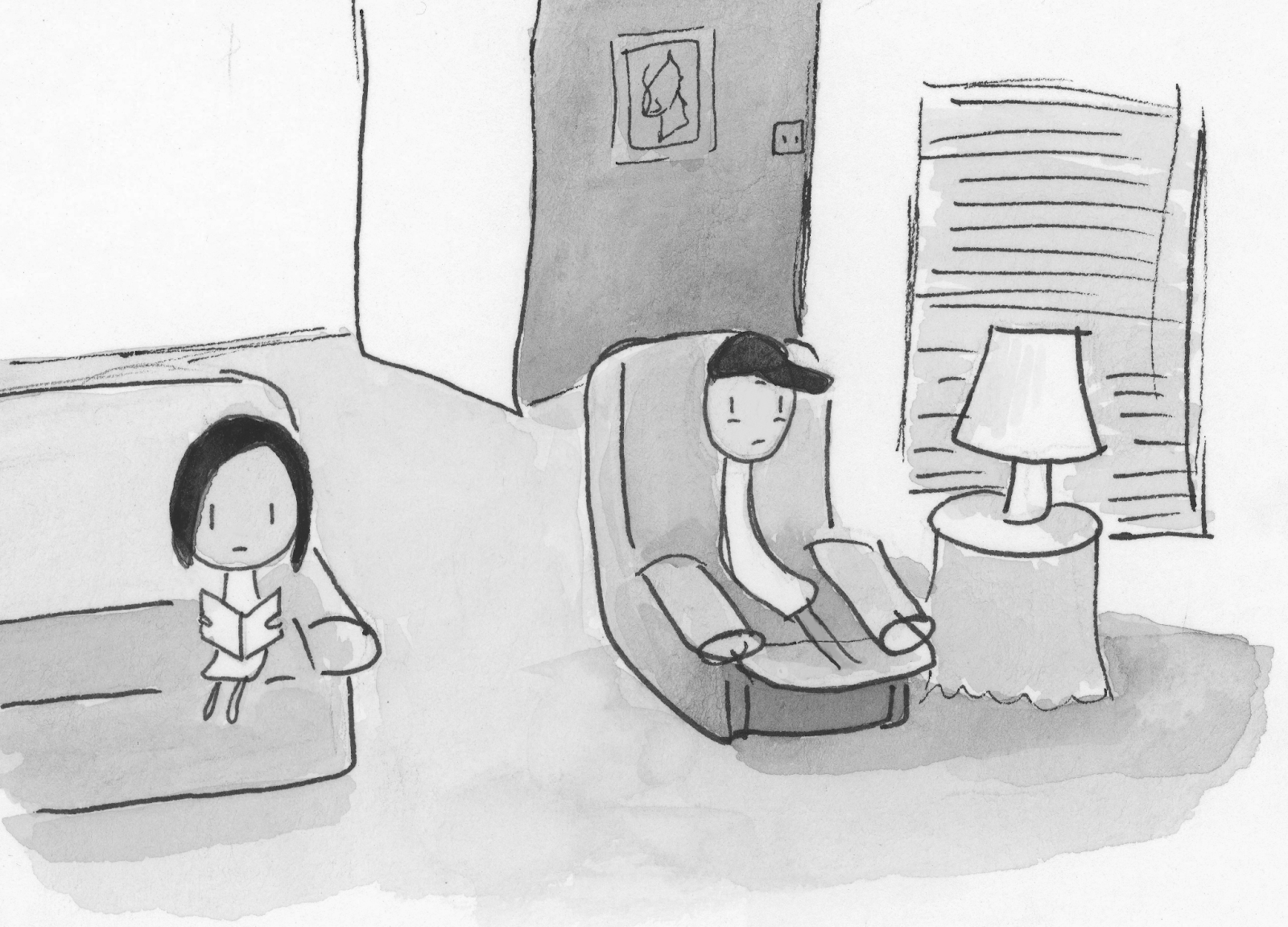 My dad was fading with each day. His skin was terribly dry due to not having bathed more than twice in four or five months. Ashes of his skin, fallen from when he would scratch, were all over his chair. When he was in pain he sat leaning to one side of his recliner, his fist propping up his skull, face grimacing tightly as he stared at the tv. Sometimes I sat at the kitchen table and worked on a needlepoint hummingbird until my arm hurt. Other times I sat on the couch and read.
