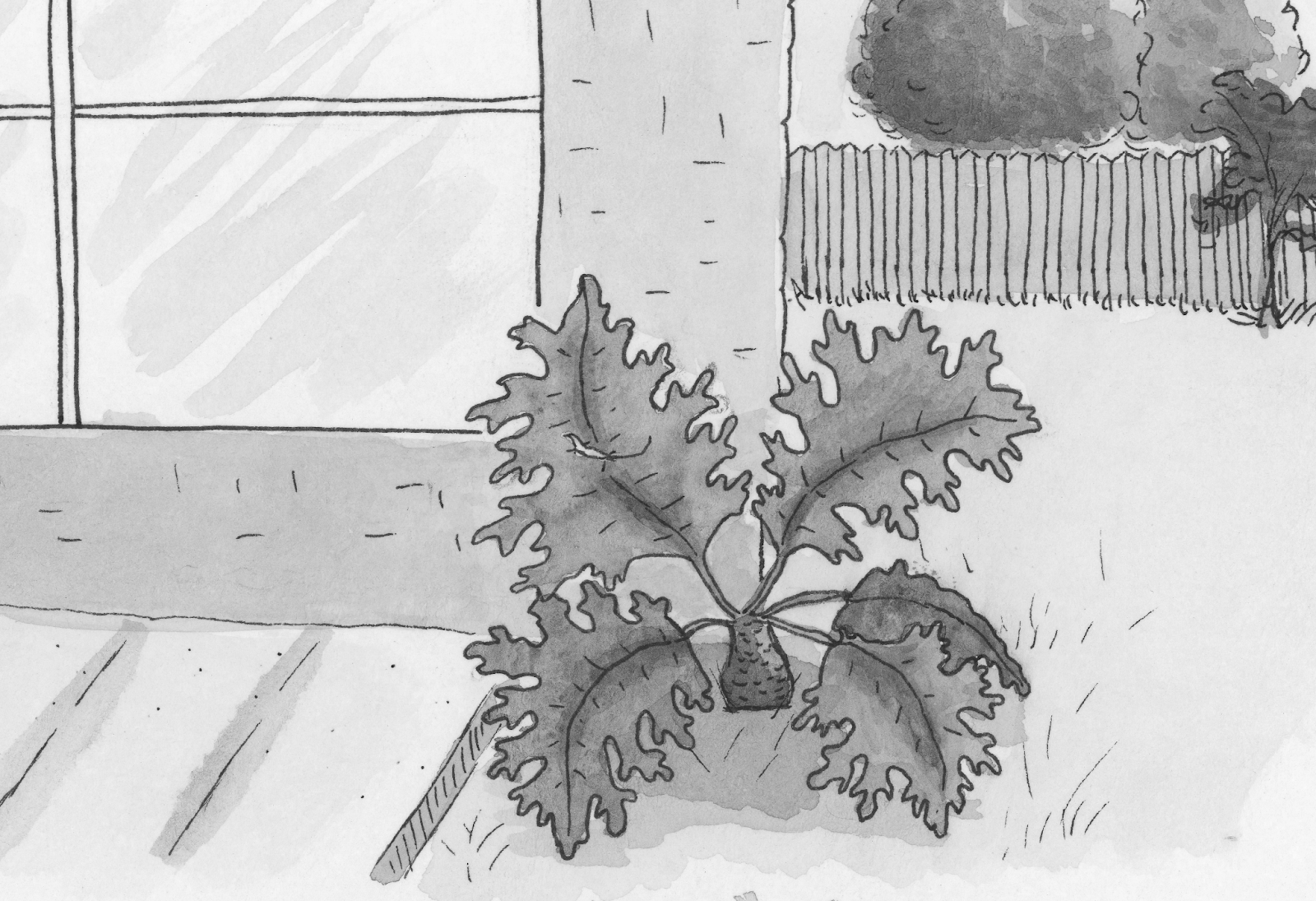 I walked to the window and scanned our backyard. I waited to hear neighbors that would explain the voice but heard nothing. The enormous philodendron that grew for decades, sat in the courtyard. Its deep green and ruffled leaves swayed slowly. An anole perched still.