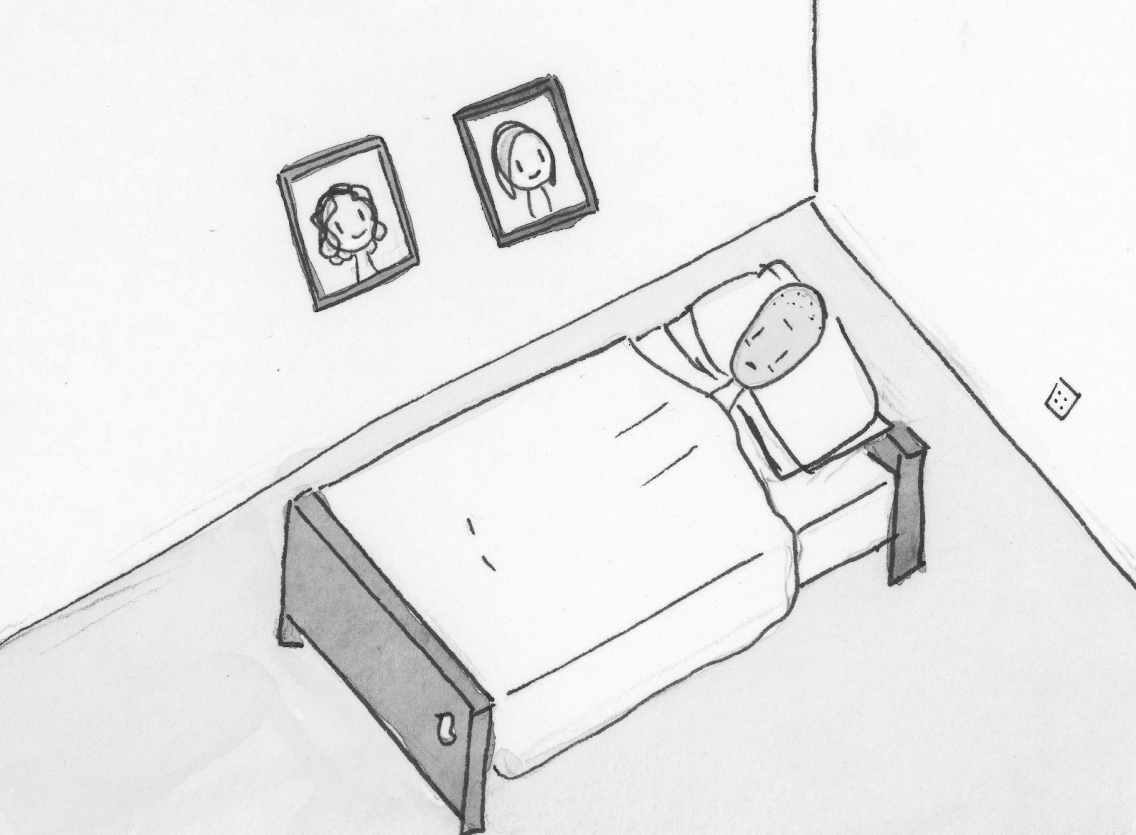 The afternoon sun leaked through the windows. In the living room, the lights were off. My dad slept in his bed. The weather had transformed into a nice warm day. Winter was gone and it was fluorescent, spring outside. The windows were open, airing out the sickness and a soft breeze flowed inside. Bright green anoles perched on walls and plants. Through the window screens, birds chirped. Everything was quiet and peaceful.