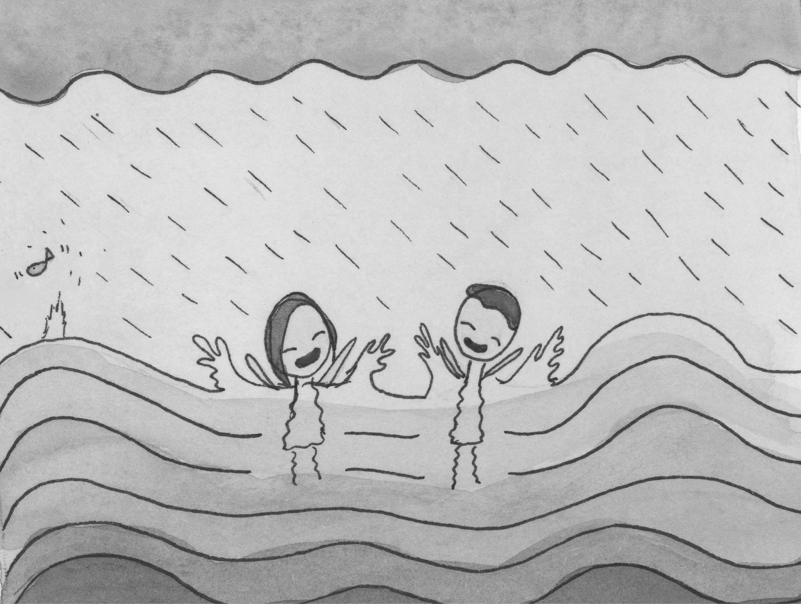 On one particular day, it was cloudy and rainy but there was no thunder. The beach was deserted and gray, not a soul in sight. I ran out in the water, absorbing each moment of that rainy opportunity. My nephew joined me as white sheets of rain marched down the shore. It was quite a sight to see, complete emptiness on Galveston beach. We bobbed up and down in the water wildly together, laughing like we were on our own private island.